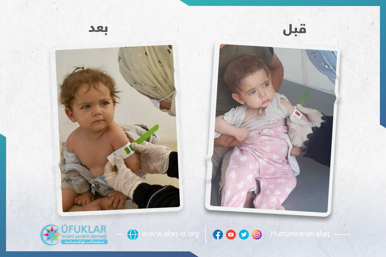 ولدت الطفلة سما بحالة صحية جيدة، وكانت خلال الأشهر الست الأولى من حياتها بأفضل حال، حيث كانت تتغذى من حليب والدتها بشكل طبيعي ، لتبدأ حالة الصغيرة بالتدهور شيئاً فشيئاً حتى دخلت بسوء التغذية الحاد الشديد. حيث تم تشخيص حالتها من خلال المسوحات التي يقوم بها فريق الاستجابة التغذوي في قرية مشهد روحين بريف إدلب الشمالي؛ وبعد التحقق من أسباب سوء التغذية تبين أنه عدم ادراج الأم للاغذية التكميلية بعد عمر 6 أشهر وذلك لقناعة الأم بأن هذه الأغذية قد تسبب مشاكل على أمعاء الطفلة،و قناعتها بأنها قد تسبب للصغار الكثير من الأمراض. قام الفريق التقني بإجراء اختبار الشهية الذي اجتازته الطفلة سما بنجاح وبدأت رحلة علاجها وفق البروتوكول المعتمد لدى اليونيسيف، مع تقديم النصائح الضرورية للأم وخاصة أهمية الأغذية التكميلية للطفل بعد بلوغه الشهر السادس من العمر، هذا بالإضافة لمتابعة علاج الطفلة وتقدم حالتها. بعد شهرين تحسنت حالة الطفلة سما إلى سوء تغذية المتوسط، واستمرت بالتحسن بفضل الله، حتى وصلت بعد ثلاثة أشهر من العلاج إلى الحالة الطبيعية عبر متابعة الفريق لها واهتمام الأم الكبير. كانت لأهمية الرسائل التغذوية المقدمة للأم مفعول السحر حيث تبدلت حالة الطفلة وساهمت في شفاء الطفلة بشكل جيد وحمايتها بالمستقبل من سوء التغذية.