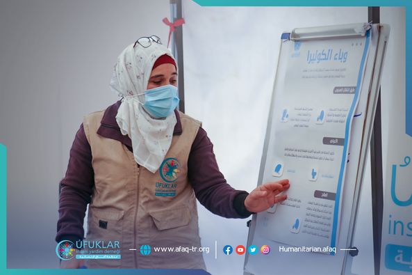 بعد الزلزال ليس كما قبله، فقد استحدثت العديد من المخيمات ومراكز الإيواء التي تفتقر إلى الحد الأدنى من نمط الحياة الصحية. حمامات ومراحيض مشتركة وصعوبة في تأمين مياه الشرب النظيفة الأمر الذي قد يشكل بيئة مثالية لانتشار الكوليرا.. وللتصدي لوباء الكوليرا عبر رفع سوية الوعي المجتمعي أطلقت آفاق بالشراكة مع منظمات الامم المتحدة حملة توعوية تستهدف الأهالي وخاصة المناطق التي تضررت من الزلزال الهائل.من المخطط أن يتم تقديم جلسات توعوية للفئات العمرية المختلفة واستخدام مكبرات صوت محمولة على سيارات تستهدف هذه المناطق، ستقدم مكبرات الصوت هذه معلومات عن وباء الكوليرا وطرق الإنتقال والأعراض وسبل الوقاية، إضافة لتوجيه الأهالي إلى المنشئات التي تقدم خدمات العلاج في حال الاصابة.