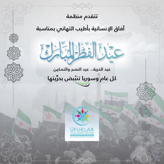 بمناسبة عيد الفطر المبارك، نسأل الله أن يعيده على سوريا وأهلها بالأمن والسلام، وأن يكتب الفرج والرخاء لكل من ضاقت بهم الأحوال. عيدكم مبارك، وكل عام وأنتم بخير.