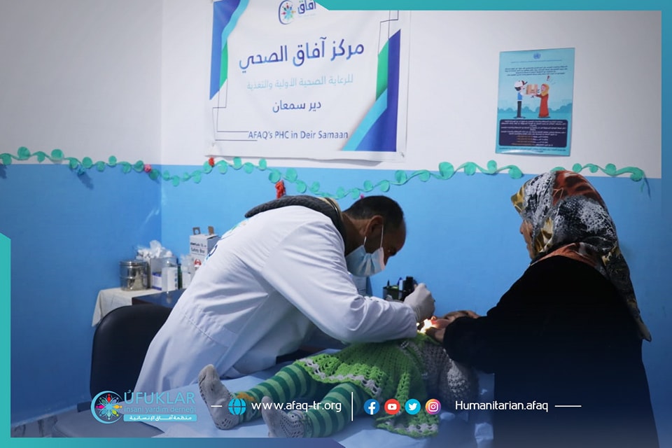 تسعى منظمة #آفاق_الإنسانية من خلال المركز الصحي في دير سمعان إلى تقديم الخدمات الصحية لأهلنا في قرية دير سمعان والقرى والمخيمات المحيطة.. تُقدم الخدمات عبر عيادة الطب العام، حيث يقوم الطبيب بإجراء فحوصات للمرضى وتقييم الأعراض لتحديد حالتهم الصحية بدقة، وتقديم الاستشارات ووصف الأدوية المناسبة، ليتم صرفها من صيدلية المركز المجانية والتي تحتوي على الأدوية الأساسية والمستهلكات الطبية.. هذا بالإضافة لعيادة الصحة الإنجابية والتي تتابع أمراض النساء، وتقدم الرعاية المناسبة قبل الولادة وبعدها.. ناهيك عن وجود قسم التغذية، والذي يعمل على تقصي حالات سوء التغذية عند الأطفال والنساء الحوامل والمرضعات، مع المتابعة الدورية وتقديم الاستشارات التغذوية والمواد العلاجية المناسبة.. وبتكامل عمل تلك العيادات تصل أعداد المستفيدين من خدمات المركز لما يزيد عن 2000 مستفيد شهرياً.
