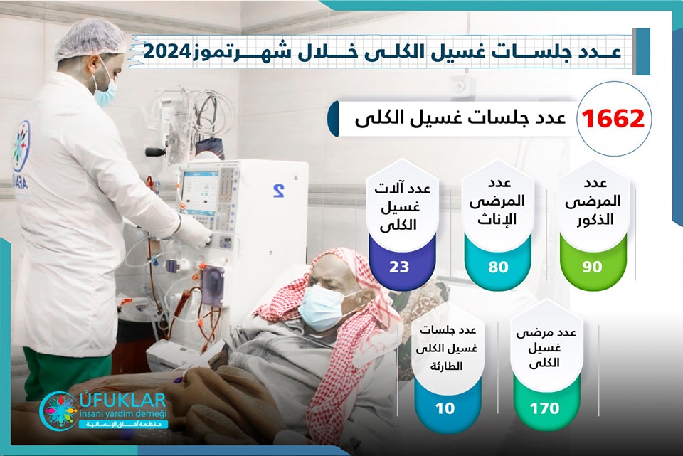 يستمر مركز الغسيل الكلوي في بلدة قاح بتقديم خدماته المنقذة للحياة، وذلك عبر جلسات الغسيل الدورية والإسعافية لمرضى الفشل الكلوي في مراحله الأخيرة..المرضى يقصدون المركز من أماكن متفرقة في الشمال السوري، باعتباره المركز الأكبر من نوعه في المنطقة.. في الصورة المرفقة بعض إحصائيات المركز لشهر تموز من هذا العام..